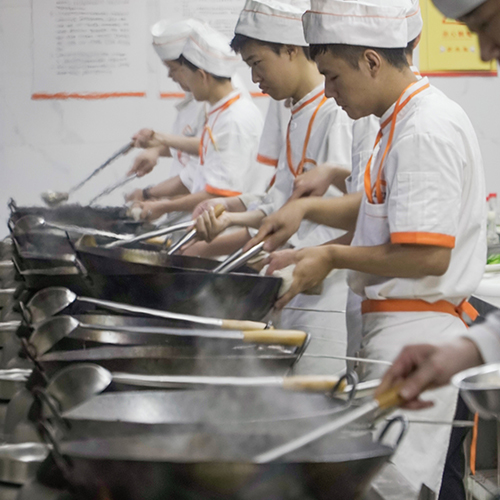 我校的学生实操课都是一人一灶,让他们有足够的时间空间去练习学习,不用害怕干扰别人,也不怕被别人干扰,专注自己的练习学习,在重复中获得更好、更高、更专业的技能。