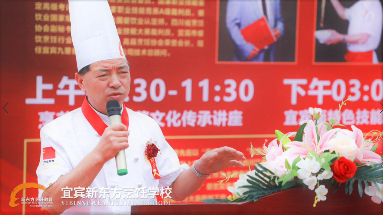 民以食为天,吃是我们人人都不开的话题。甚至在四川我们碰面的第一句话就是:你吃了吗?关于吃我们川菜作为八大菜系之一、川菜馆遍布世界各地,仿佛更有发言权。而我们川菜的传承与创新离不开川菜厨艺大师们几十年如一日的专研和创新,离不开他们选择川菜终一生的匠人精神。为让学生的厨艺更进一步,对厨师精神有更深刻领悟和对川菜文化有更系统认识,我校创就业指导中心与教学部联动展开了川菜文化技能传承讲座活动,邀请了川菜名厨邓正庆大师,来宜宾新东方烹饪学校讲授川菜的历史,并现场教授了新东方的同学们制作宜宾传统小吃宜宾燃面。